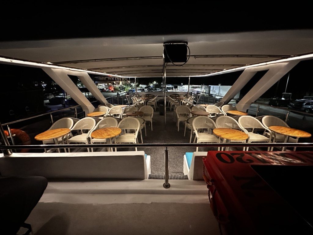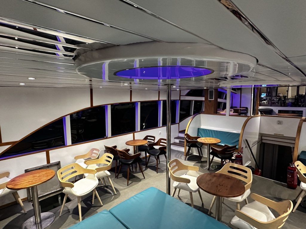 Athos has been specifically designed for glass bottom cruises Halkidiki’s sea, allowing guests to observe the seabed and marine life through specially constructed glass viewing sections.