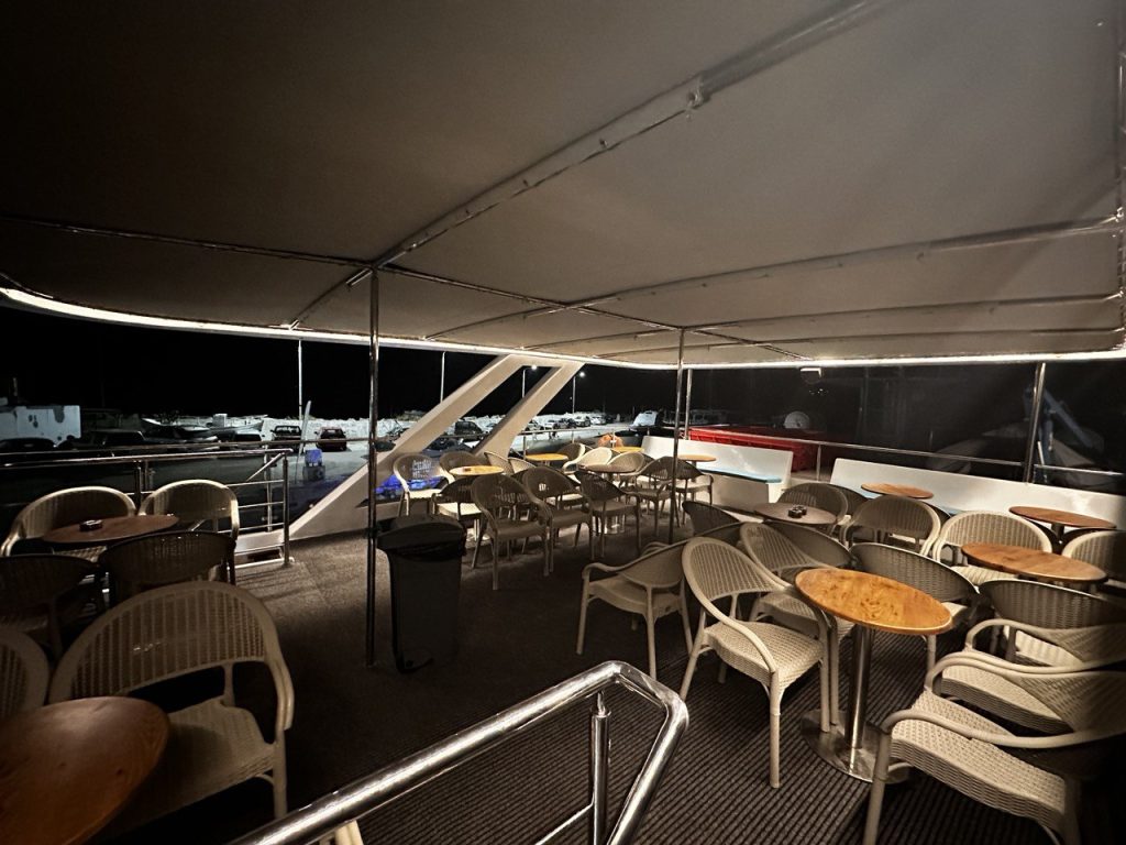 Safety is a top priority on board Athos. The vessel is fully equipped according to maritime regulations and designed to operate responsibly in coastal and open-sea conditions.