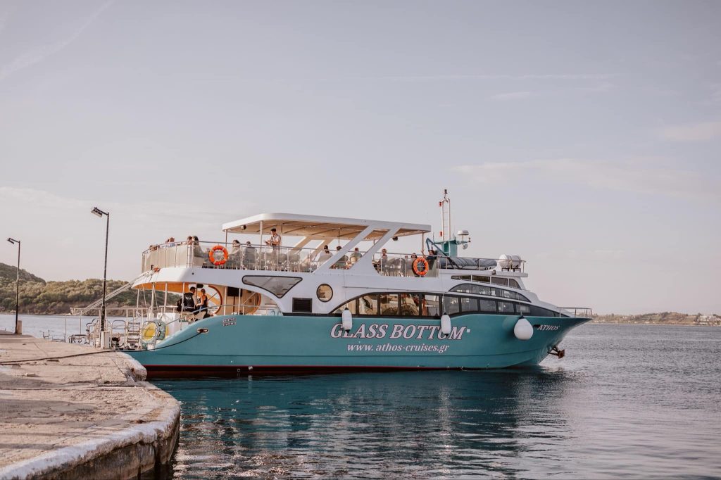 Athos offers carefully planned glass bottom boat excursions showcasing the natural beauty of Halkidiki and nearby coastal areas.
