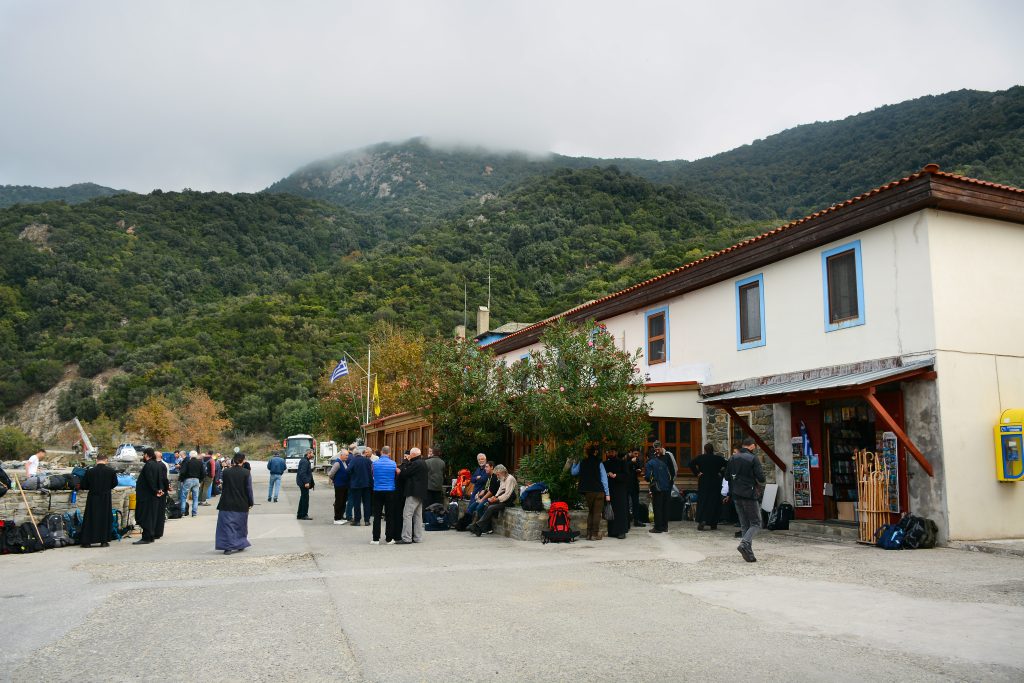 No. Dafni is not a monastery. It is a working port that serves the administrative and logistical needs of the Athonite monastic community.