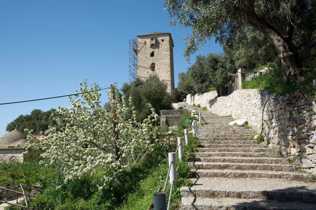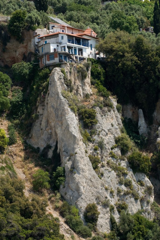 From the sea, the eye follows a natural rhythm. Small chapels, individual dwellings and narrow paths emerge gradually from the landscape, blending into the hillside rather than standing apart from it. This dispersed arrangement creates a softer visual experience, one that feels calm and unforced.