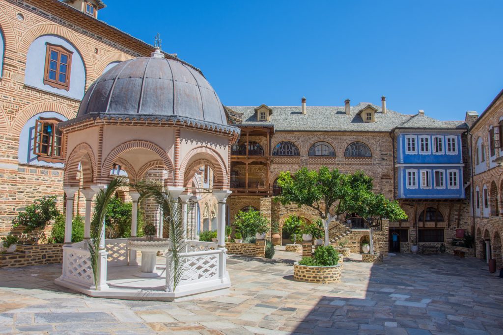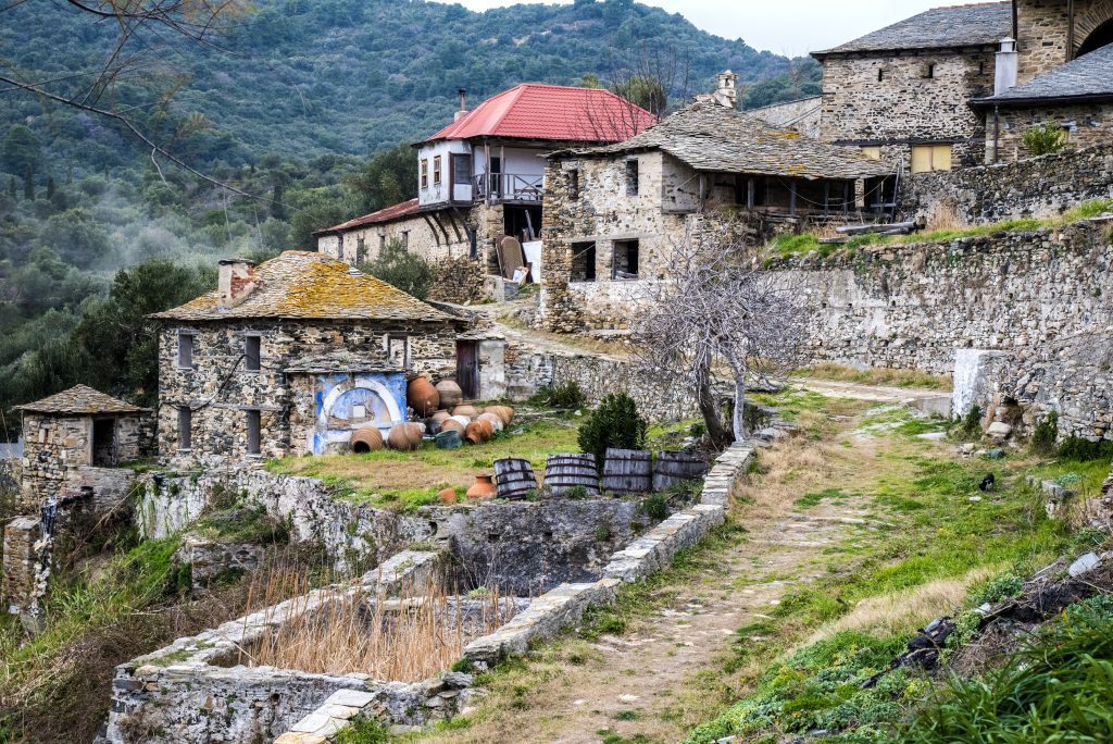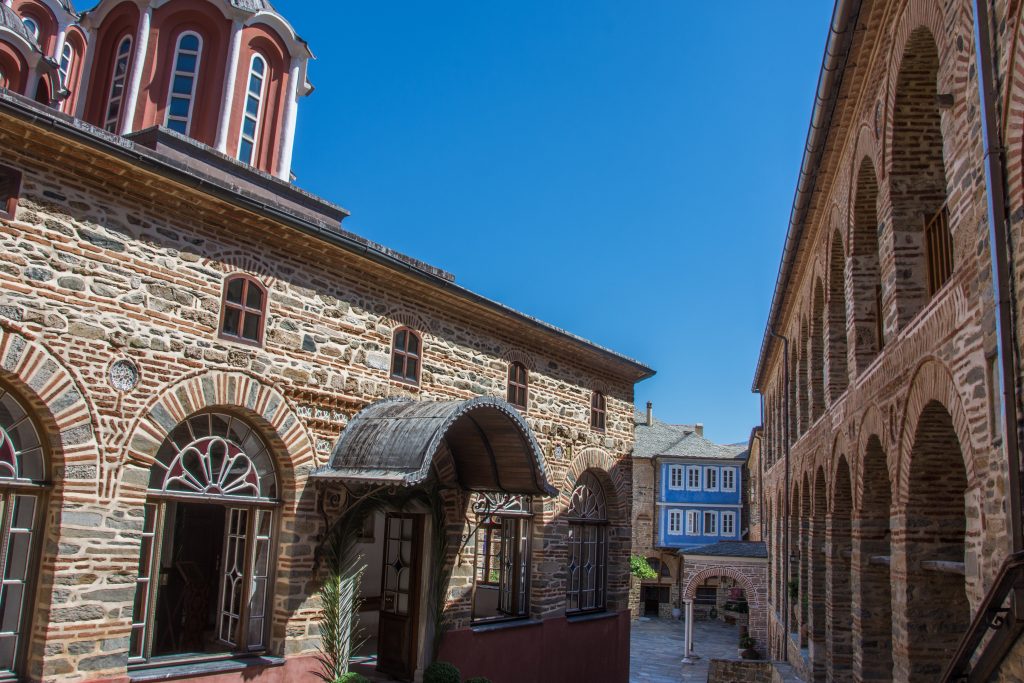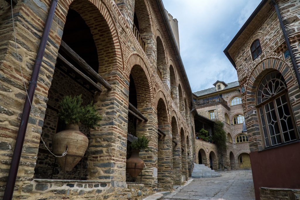 Because Pantokrator Monastery Mount Athos is built in a rugged coastal setting, the overall complex often feels compact and strongly enclosed, reflecting both landscape constraints and the older need for protection. Chapels and smaller devotional spaces add liturgical depth, while courtyards and enclosed passages shape movement in a way that keeps the monastery inward-