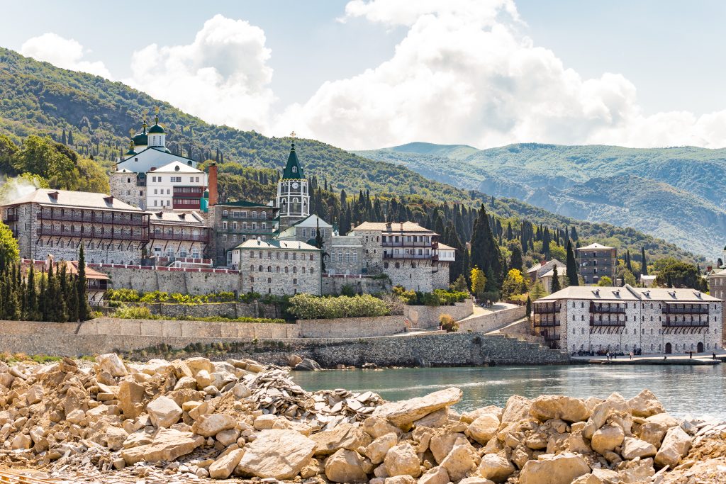 Saint Panteleimonos Monastery, widely known as the Russian Monastery of Mount Athos, is one of the most imposing and distinctive landmarks along the southwestern coastline of the Holy Mountain. Closely associated with the Russian Orthodox tradition, its scale and architectural density immediately set it apart from all other monasteries visible from the sea.