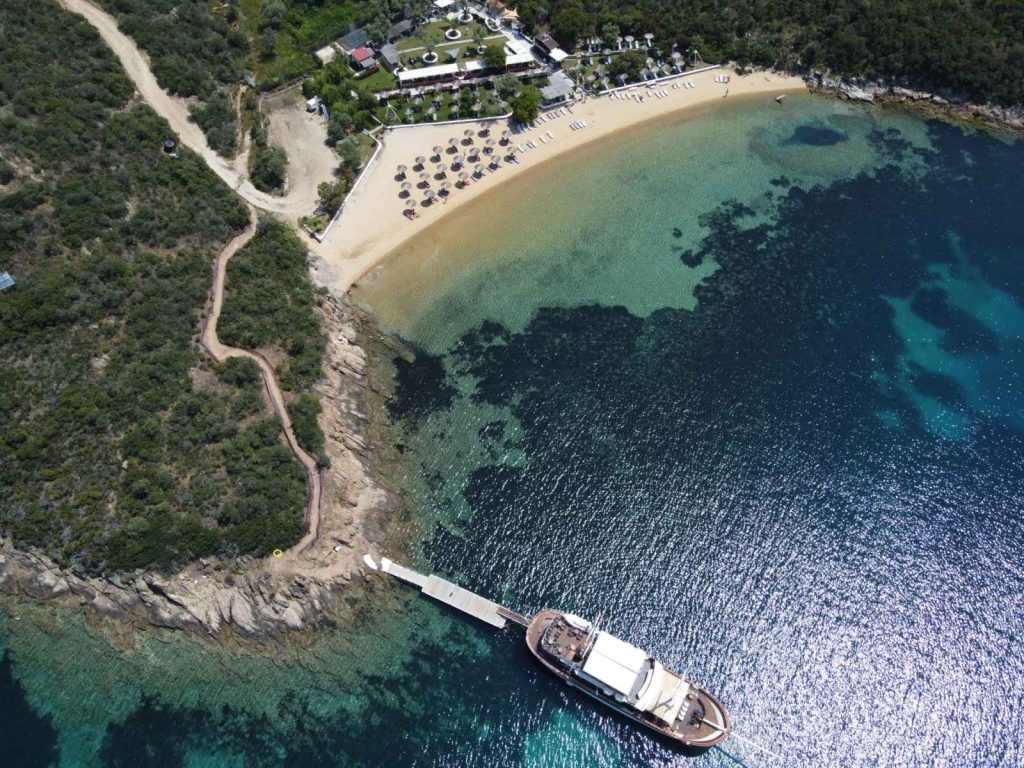 This route showcases Saint George as a traditional wooden boat that blends sightseeing, leisure and swimming, offering a complete and relaxed cruising experience in Sithonia and the wider Halkidiki area.